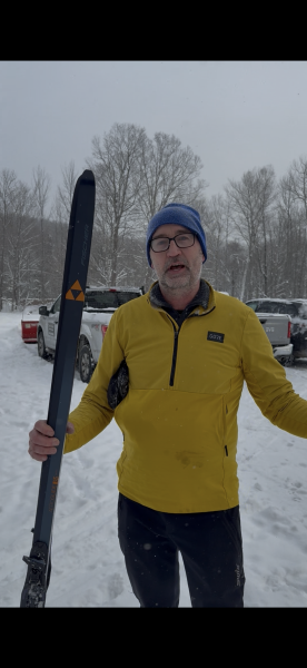 A few photos from yesterday. Little fella to look for on the Peregrine. Ben, owner of Four Mountain Cycles in Londonderry talking to me about his ski, and skiing on the Chickadee.