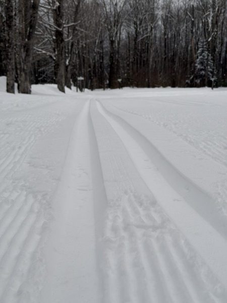Photo above on the left is from Saturday morning. Photo on the right is today. The snow has groomed out nicely this morning. The classic track and the skate … more