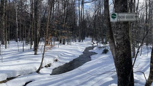 Thanks to the machine above, (last year photo) we have a good loose granular skiing surface. With the dusting of snow falling and blowing around. Low trails all groomed this morning. Track and skate lane.