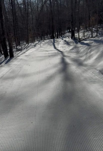 We do have one inch of new snow on the ground this morning. The one inch is powdery, sparkly, light fresh, beautiful snow. Such a sight for sore eyes after our little January thaw. We made it though the thaw with a good base intact. With the snow cat, a lot of horse power, the we tilled the snow up nicely, and now has the fabulous snow on top! What a great day.