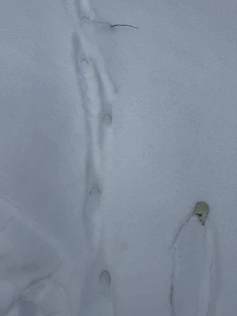 While you are out skiing today watch for animal tracks. Coyote in the photo below.