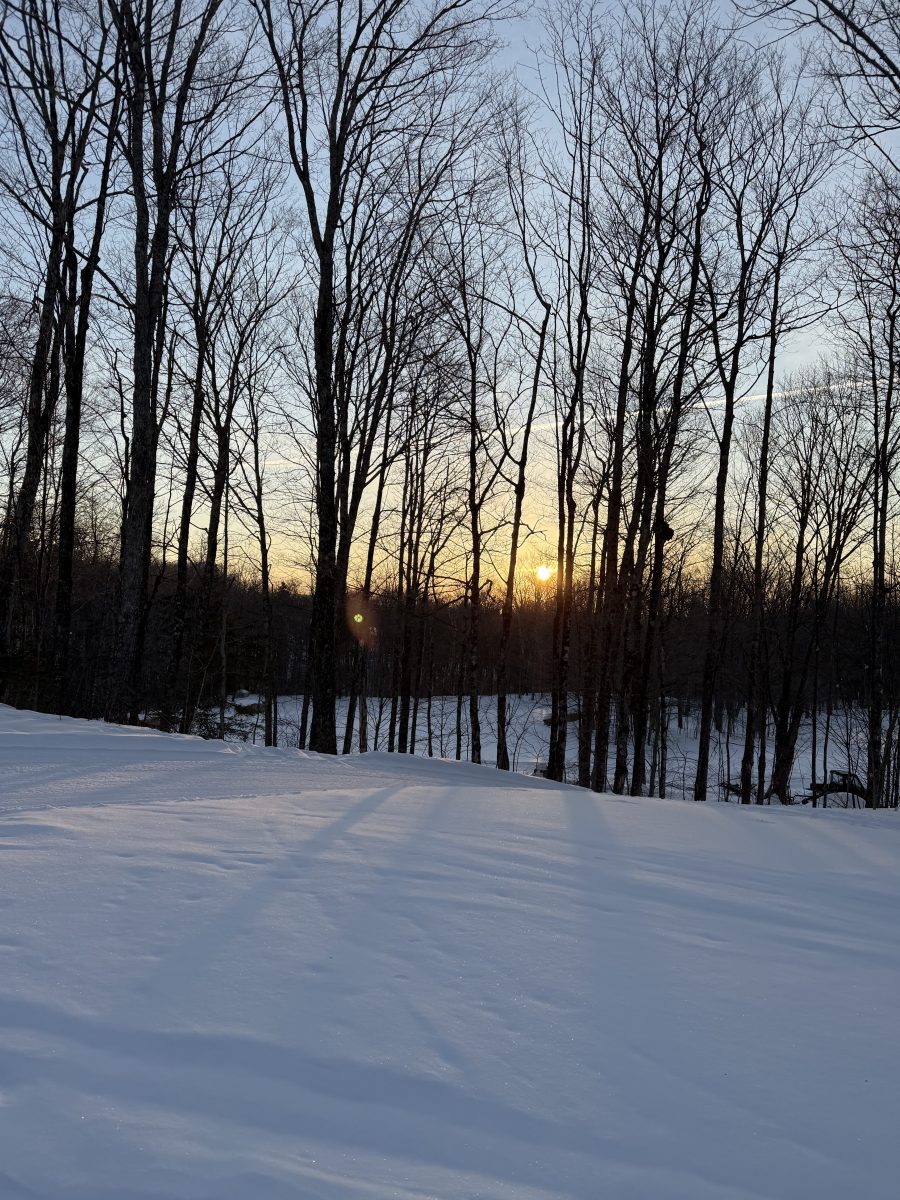 The birds are busy too. We are filling the bird feeder daily. We have all the normal winter bird feeder birds, blue jays, chickadee, tufted tit mice, red breasted nuthatch, white breasted nuthatch, downy woodpeckers, hairy woodpeckers, mourning doves, goldfinches, and we have had a pine grosbeak or two. We have purple finches off and on. And as spring gets closer we have quite a few juncos. We have not seen many evening grosbeaks, we don’t really have cardinals here, except as they pass through to better habitat. Last weekend we had two skiers with binoculars and it was fun to hear which birds they had spotted in the woods.
