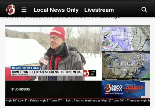 And this happened yesterday too. Connor, news and sports reporter from WCAX came down after Ben won the silver to talk to a few folks from Ben’s life. Bill, Sverre, Jonathan and Andy all gave their perspective. If you want to see the story click here. And Connor stayed for the evening so he could be live from Wild Wings. Poor guy interviewed everyone around noon. And stayed and did live reporting at 4:30 and 6:00 pm. There are a few details that got confused, it is all good.